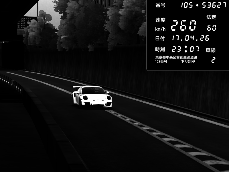 | 2026/04/17 23:07 | C1外回り 京橋 | 260 / 60 km/h | Porsche 911 GT3 RS | CAPTURE |