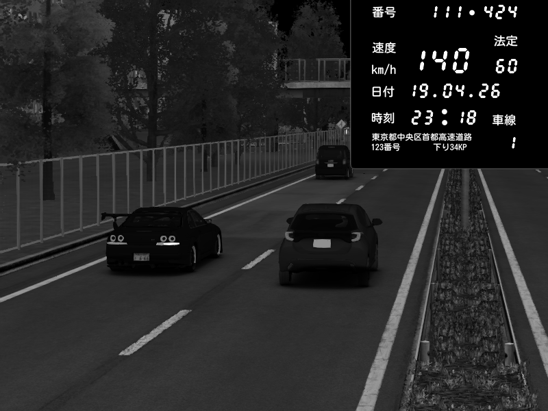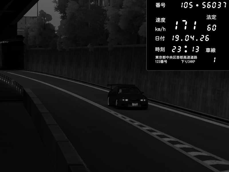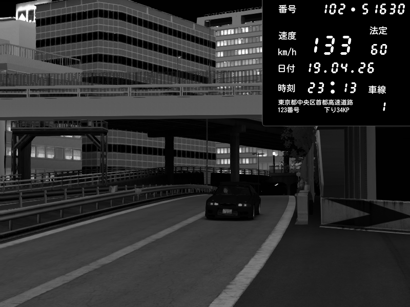 | 2026/04/19 23:13 | C1外回り 新富町 | 133 / 60 km/h | Nissan Skyline GTR R33 (S3 - Wangan) | CAPTURE |