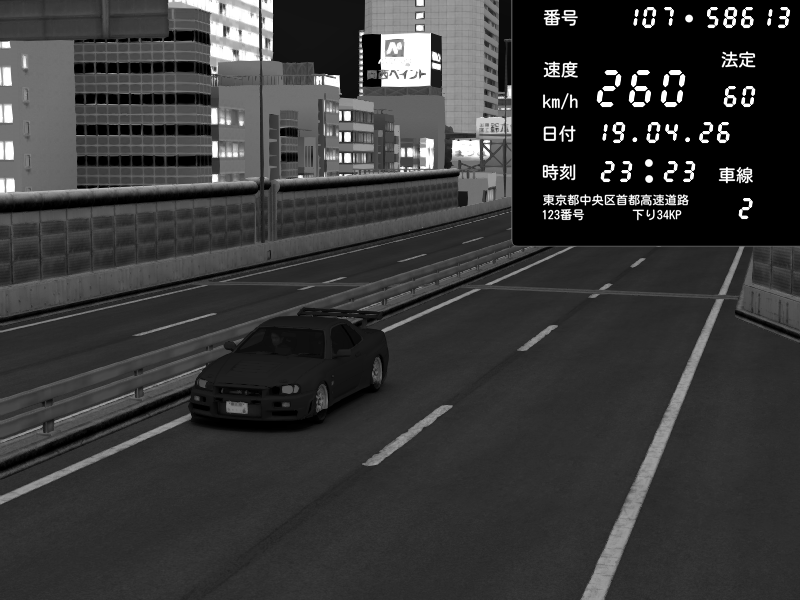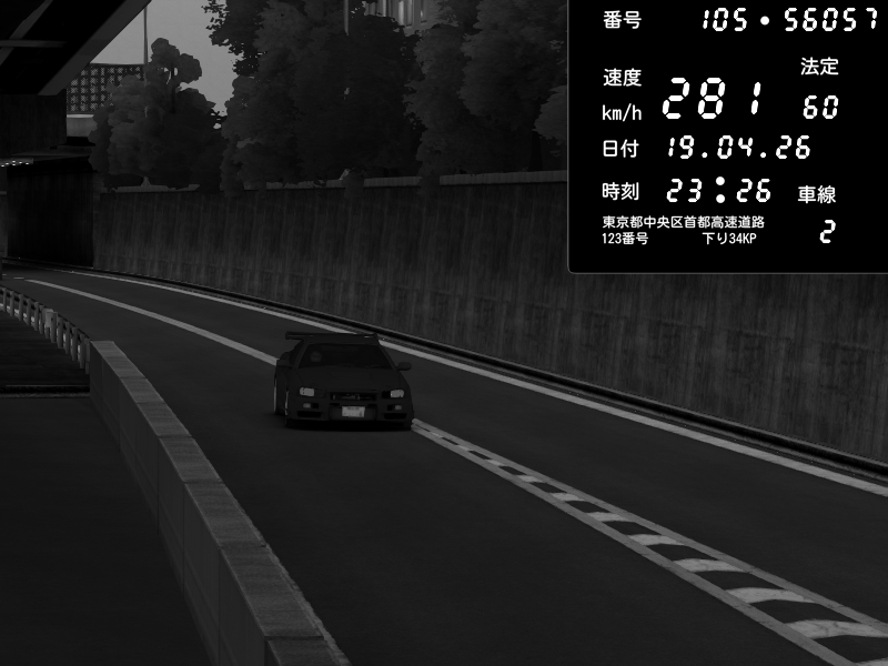| 2026/04/19 23:30 | C1外回り 新富町 | 214 / 60 km/h | Nissan Skyline GT-R R34 Nismo Omori Factory S1 | CAPTURE |