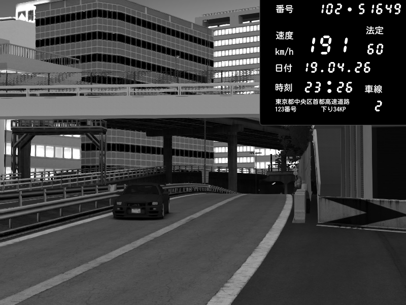 | 2026/04/19 23:26 | C1外回り 新富町 | 191 / 60 km/h | Nissan Skyline GT-R R34 Nismo Omori Factory S1 | CAPTURE |