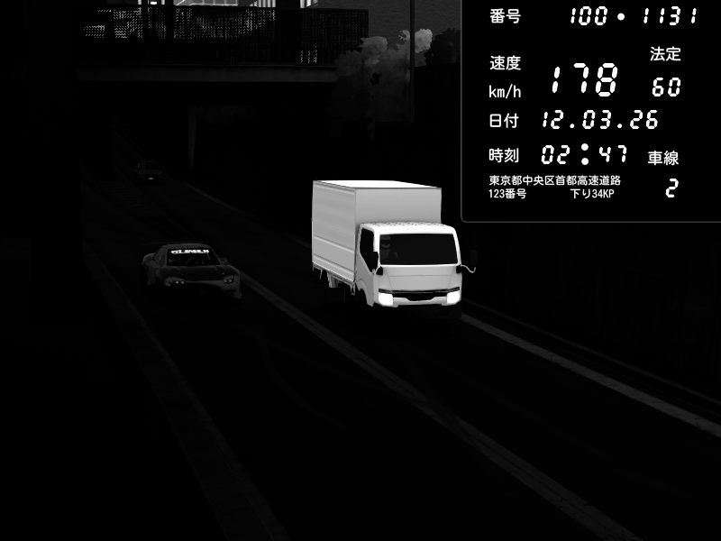 | 2026/03/12 02:47 | C1内回り 京橋 | 178 / 60 km/h | Pit Road M - Mitsubishi GTO Twin Turbo | CAPTURE |