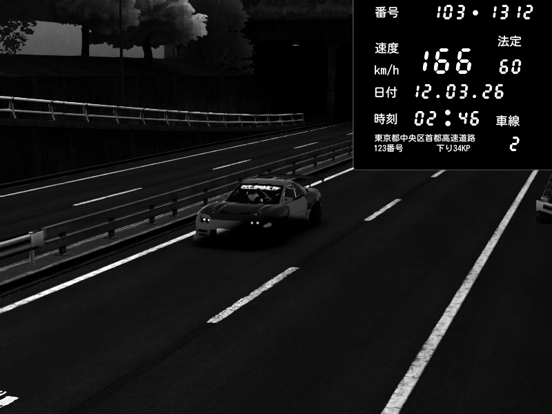 | 2026/03/12 02:46 | C1内回り 銀座 | 166 / 60 km/h | Pit Road M - Mitsubishi GTO Twin Turbo | CAPTURE |