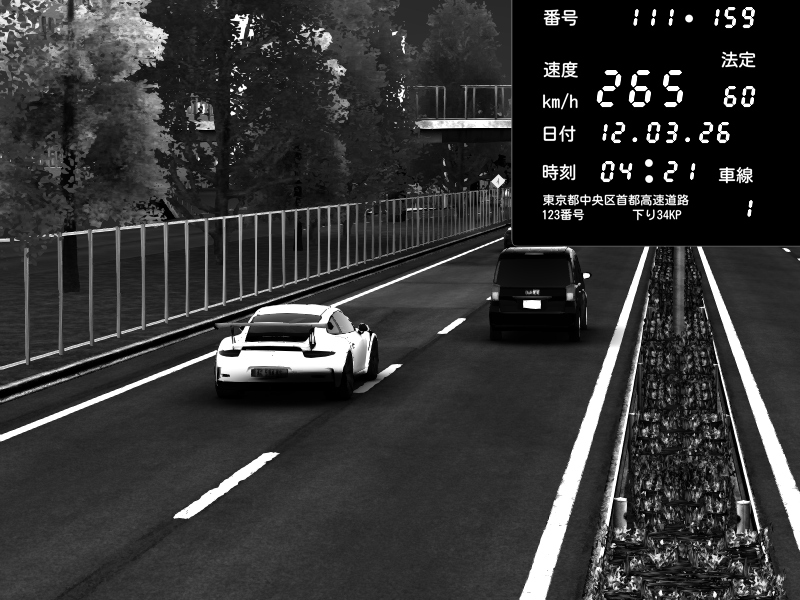 | 2026/03/12 04:21 | 1号下り 平和島 | 265 / 60 km/h | Porsche 911 GT3 RS | CAPTURE |