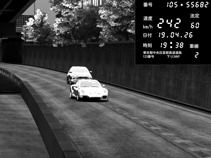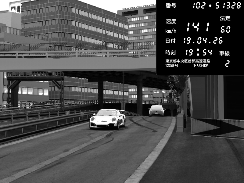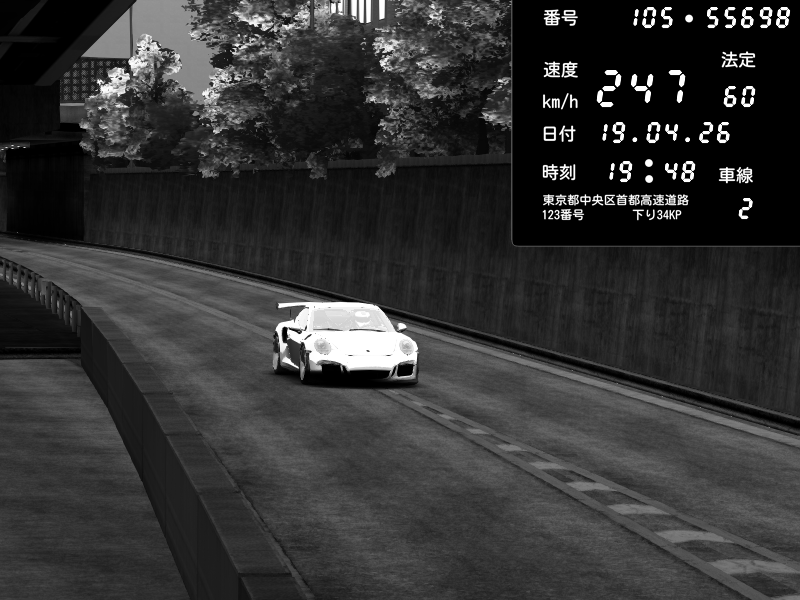 | 2026/04/19 19:38 | C1外回り 京橋 | 242 / 60 km/h | Porsche 911 GT3 RS | CAPTURE |
