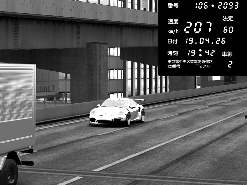 | 2026/04/19 19:42 | 9号下り 木場 | 207 / 60 km/h | Porsche 911 GT3 RS | CAPTURE |