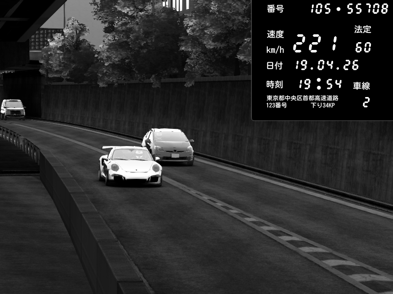 | 2026/04/19 19:54 | C1外回り 京橋 | 221 / 60 km/h | Porsche 911 GT3 RS | CAPTURE |