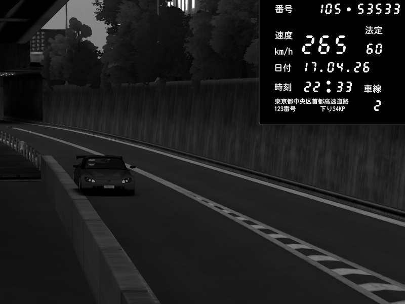 | 2026/04/17 22:32 | C1外回り 京橋 | 255 / 60 km/h | Honda S2000 (AP2 - Legendary) | CAPTURE |