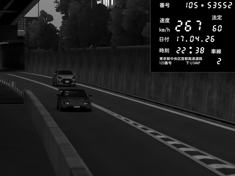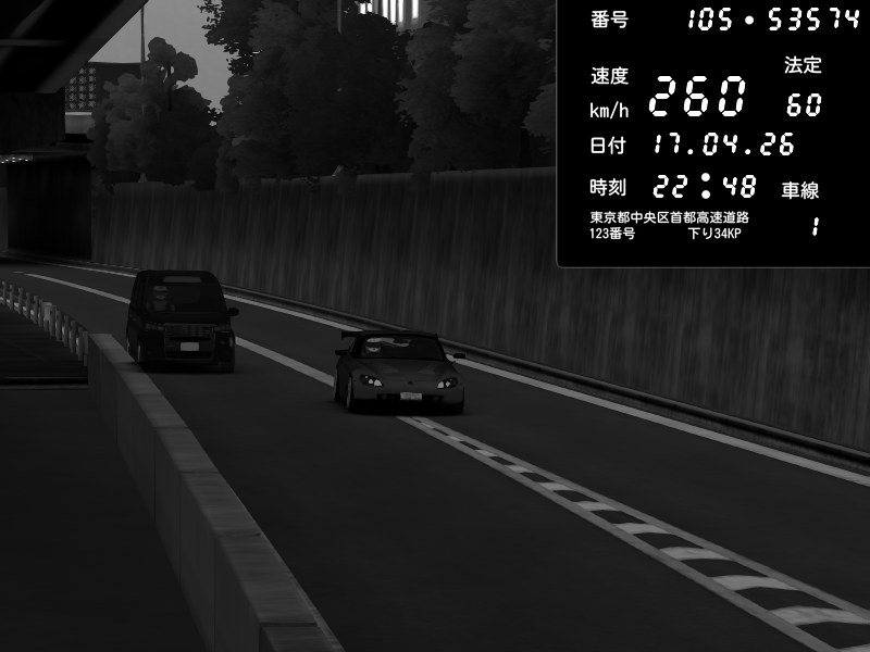 | 2026/04/17 22:48 | C1外回り 新富町 | 192 / 60 km/h | Honda S2000 (AP2 - Legendary) | CAPTURE |