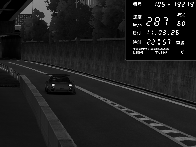 | 2026/03/11 23:05 | C1外回り 京橋 | 268 / 60 km/h | Mazda RX-7 FD3S FEED Afflux GT3 | CAPTURE |