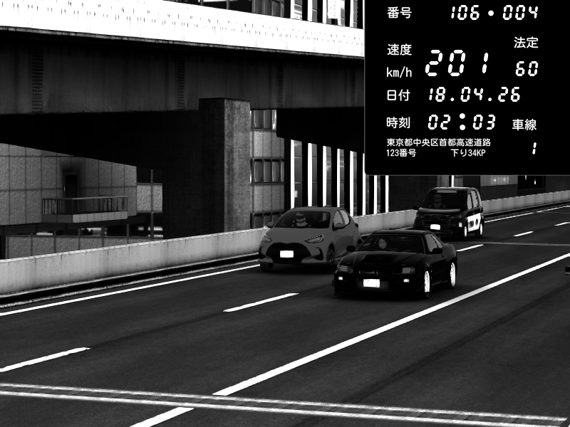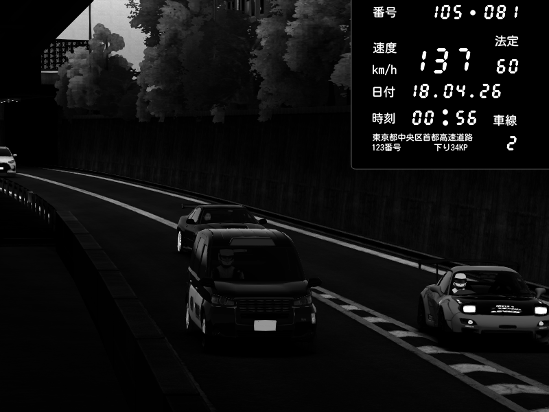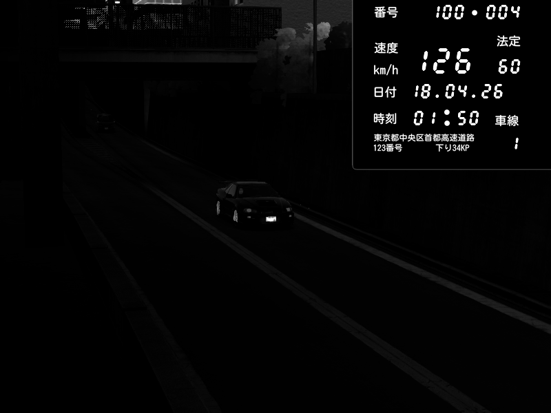 | 2026/04/18 01:38 | 4号下り 代々木 | 142 / 60 km/h | Nissan Skyline GT-R R34 Nismo Omori Factory S1 | CAPTURE |
