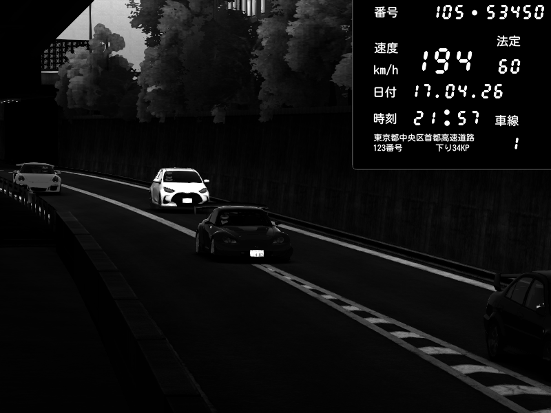 | 2026/04/17 21:57 | C1外回り 新富町 | 134 / 60 km/h | Honda S2000 Turbo GT1 Amuse (AP1) | CAPTURE |