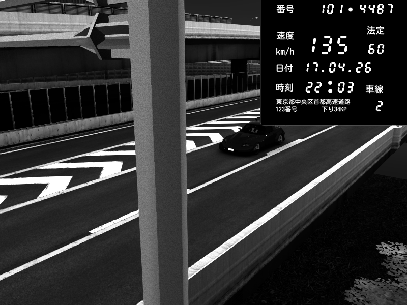 | 2026/04/17 22:03 | C1内回り 竹橋JCT | 135 / 60 km/h | Honda S2000 Turbo GT1 Amuse (AP1) | CAPTURE |
