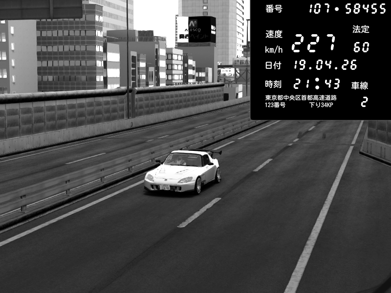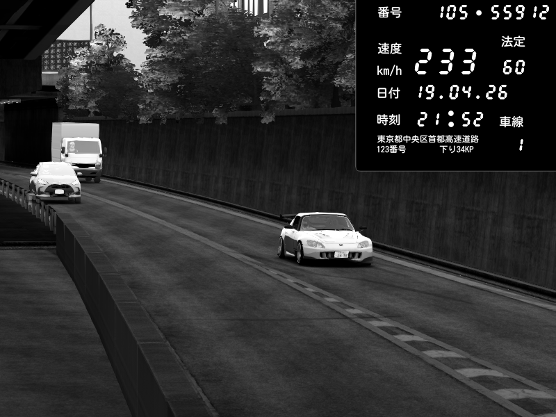 | 2026/04/19 21:52 | C1外回り 京橋 | 233 / 60 km/h | Honda S2000 (AP2 - Legendary) | CAPTURE |