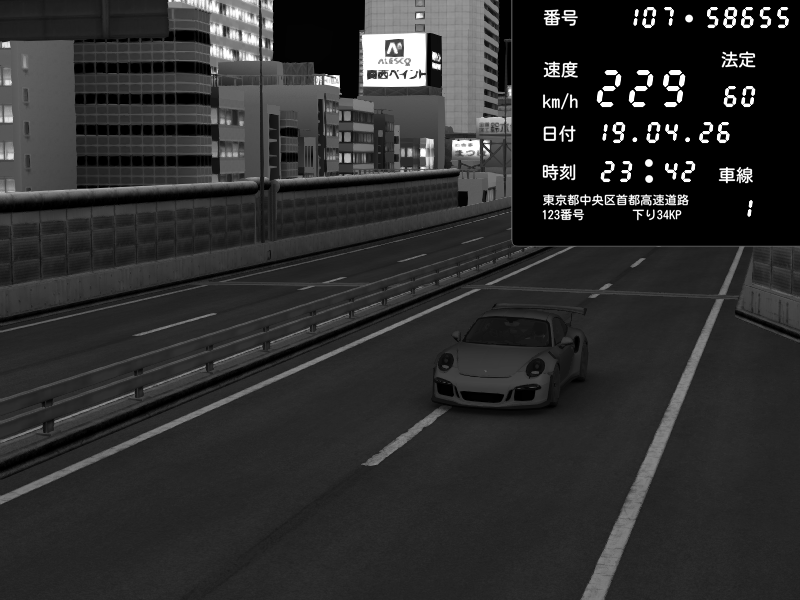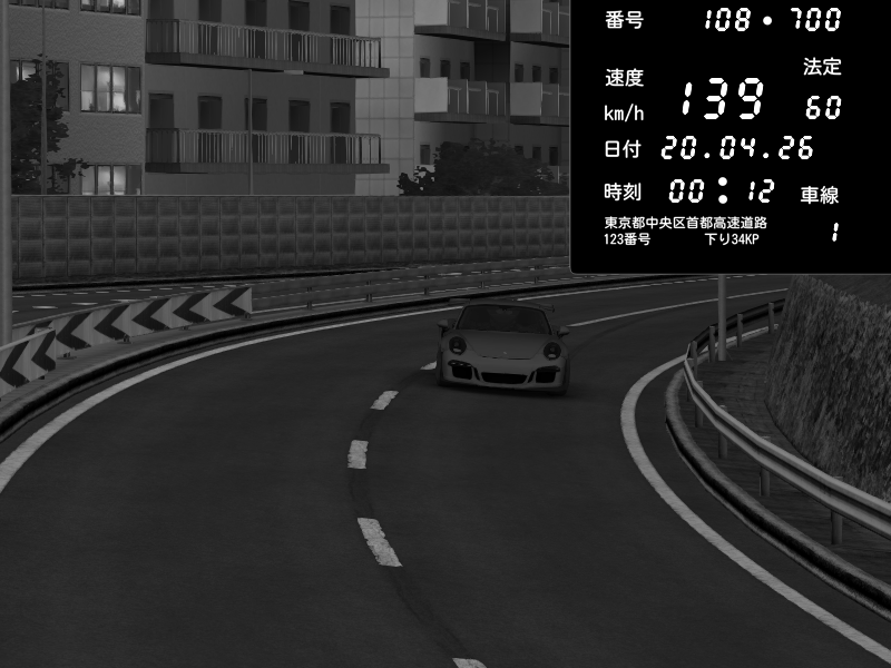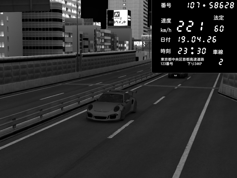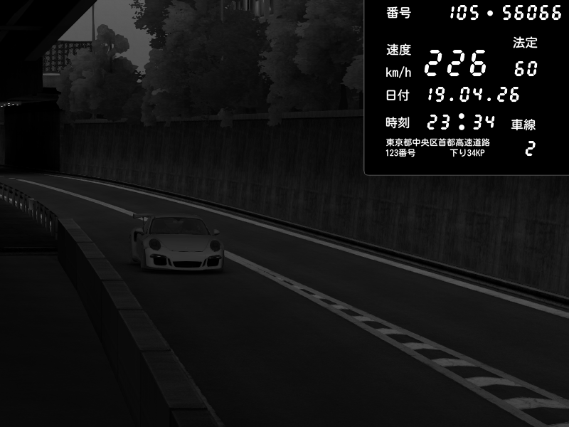 | 2026/04/19 23:34 | C1外回り 京橋 | 226 / 60 km/h | Porsche 911 GT3 RS | CAPTURE |