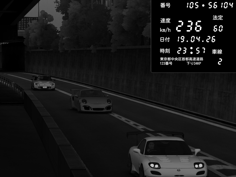 | 2026/04/19 23:57 | C1外回り 京橋 | 236 / 60 km/h | Porsche 911 GT3 RS | CAPTURE |