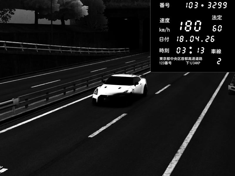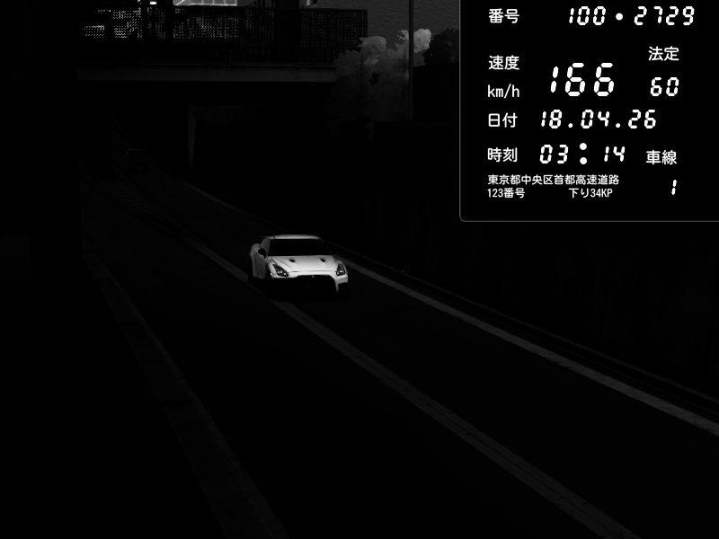 | 2026/04/18 03:13 | C1内回り 銀座 | 180 / 60 km/h | Nissan GT-R NISMO 2017 | CAPTURE |