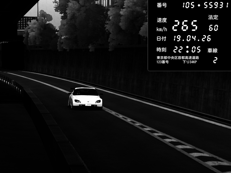 | 2026/04/16 23:30 | C1外回り 京橋 | 255 / 60 km/h | Honda S2000 (AP2 - Legendary) | CAPTURE |