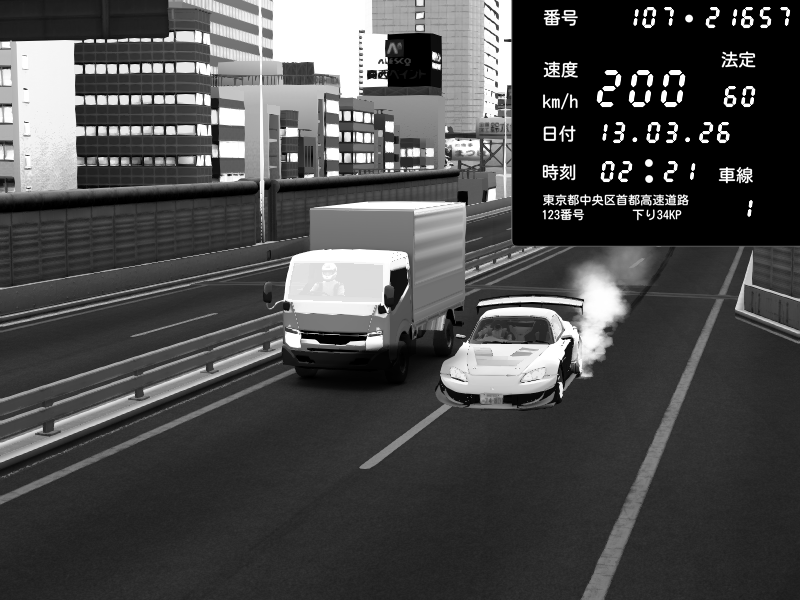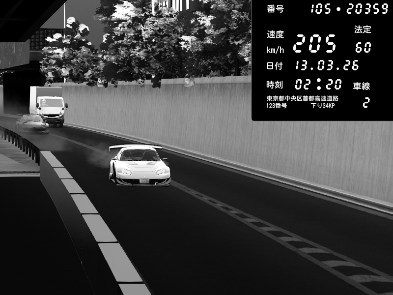 | 2026/03/13 02:09 | C1外回り 新富町 | 190 / 60 km/h | Honda S2000 Turbo GT1 Amuse (AP1) | CAPTURE |