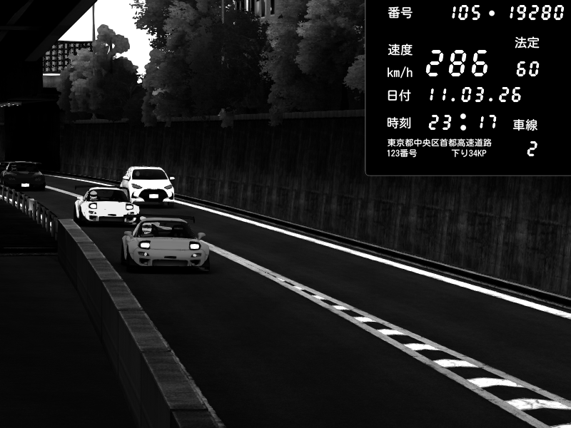 | 2026/03/11 22:58 | C1外回り 芝公園 | 253 / 60 km/h | Mazda RX-7 FD3S FEED Afflux GT3 | CAPTURE |
