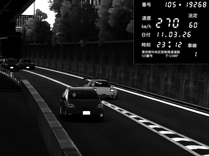 | 2026/03/11 23:05 | C1外回り 京橋 | 271 / 60 km/h | Mazda RX-7 FD3S FEED Afflux GT3 | CAPTURE |