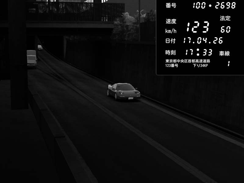 | 2026/04/17 17:33 | C1内回り 京橋 | 123 / 60 km/h | Honda NSX [NA1] PVLSX | CAPTURE |