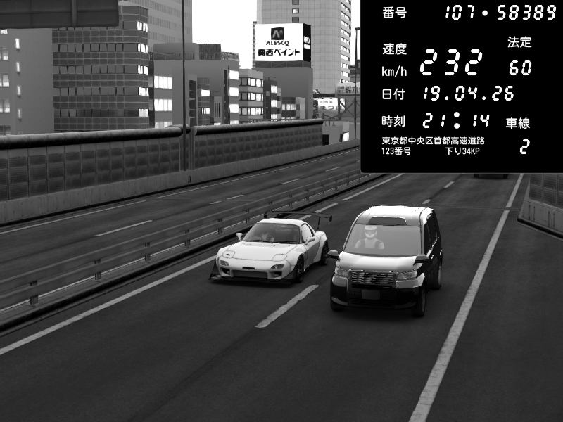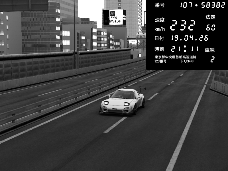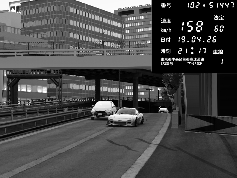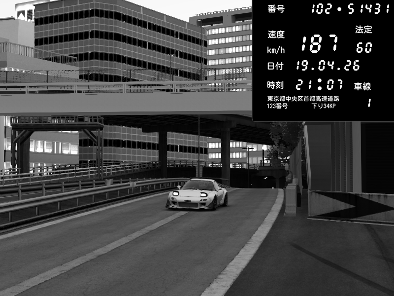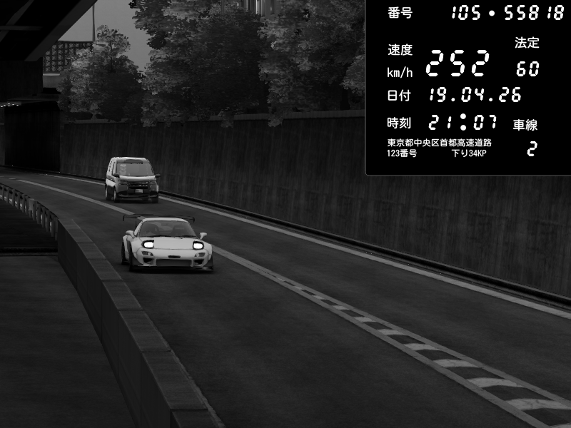| 2026/04/19 21:07 | C1外回り 京橋 | 252 / 60 km/h | Mazda RX-7 FD3S FEED Afflux GT3 | CAPTURE |