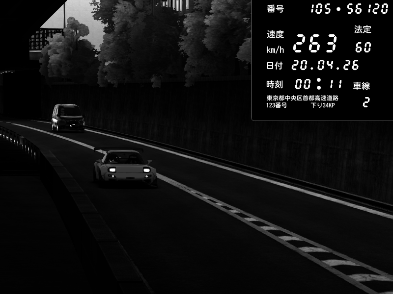 | 2026/04/20 00:11 | C1外回り 新富町 | 158 / 60 km/h | Mazda RX-7 FD3S FEED Afflux GT3 | CAPTURE |