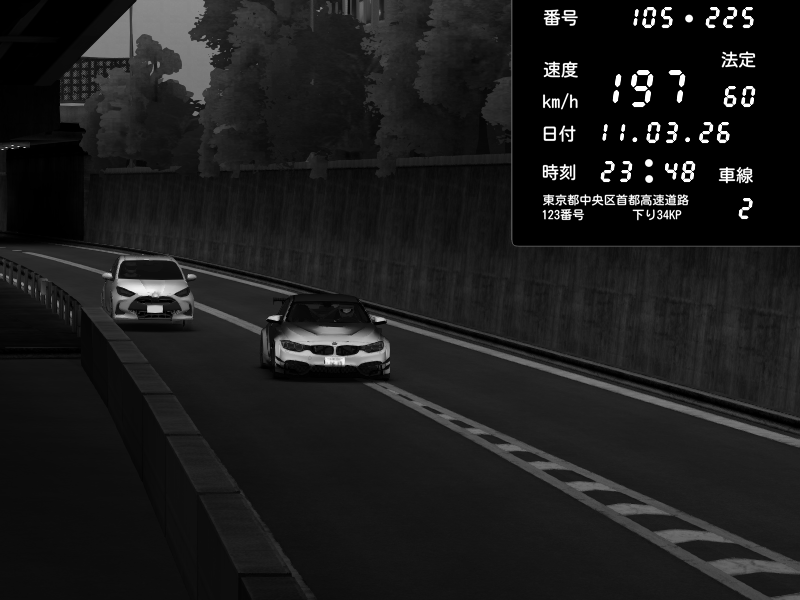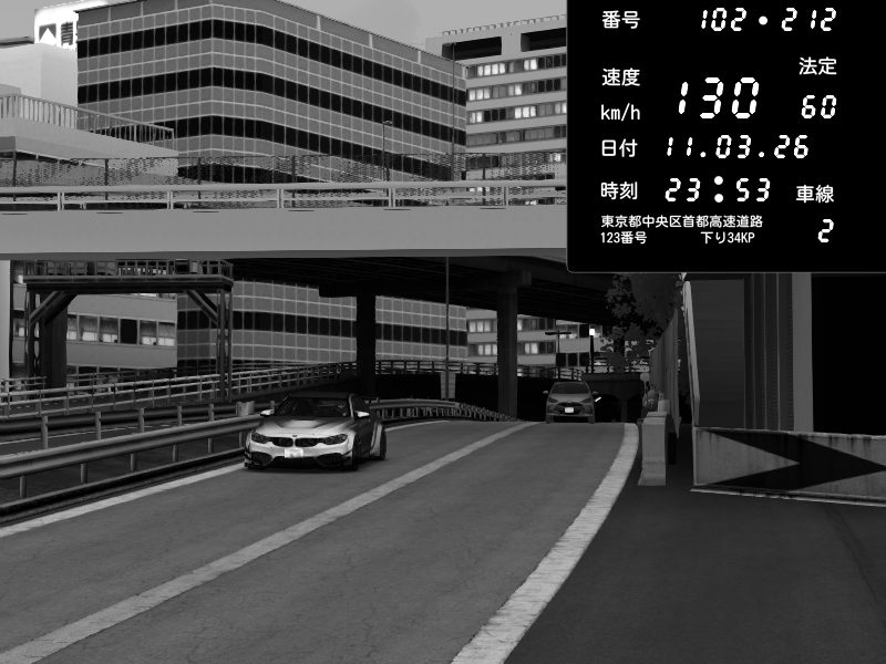 | 2026/03/11 23:48 | C1外回り 京橋 | 197 / 60 km/h | BMW M4 crash.Sp Varis Widebody | CAPTURE |