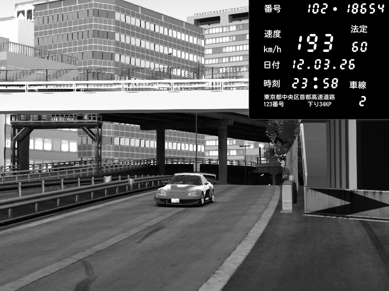 | 2026/03/12 23:58 | C1外回り 新富町 | 193 / 60 km/h | Honda S2000 Turbo GT1 Amuse (AP1) | CAPTURE |