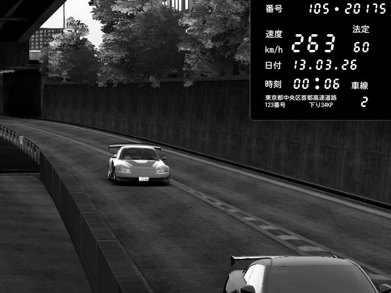 | 2026/03/13 00:06 | C1外回り 京橋 | 263 / 60 km/h | Honda S2000 Turbo GT1 Amuse (AP1) | CAPTURE |