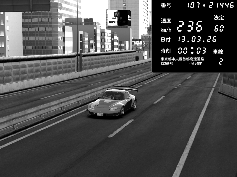 | 2026/03/13 00:03 | C1外回り 芝公園 | 236 / 60 km/h | Honda S2000 Turbo GT1 Amuse (AP1) | CAPTURE |