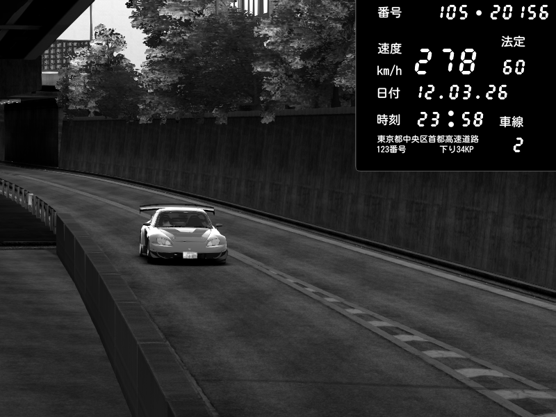 | 2026/03/12 23:58 | C1外回り 京橋 | 278 / 60 km/h | Honda S2000 Turbo GT1 Amuse (AP1) | CAPTURE |
