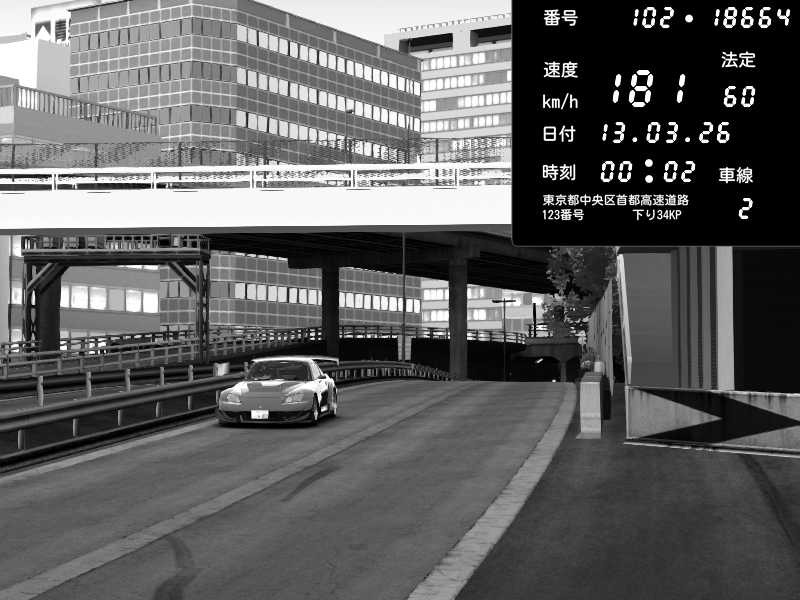 | 2026/03/13 00:02 | C1外回り 新富町 | 181 / 60 km/h | Honda S2000 Turbo GT1 Amuse (AP1) | CAPTURE |