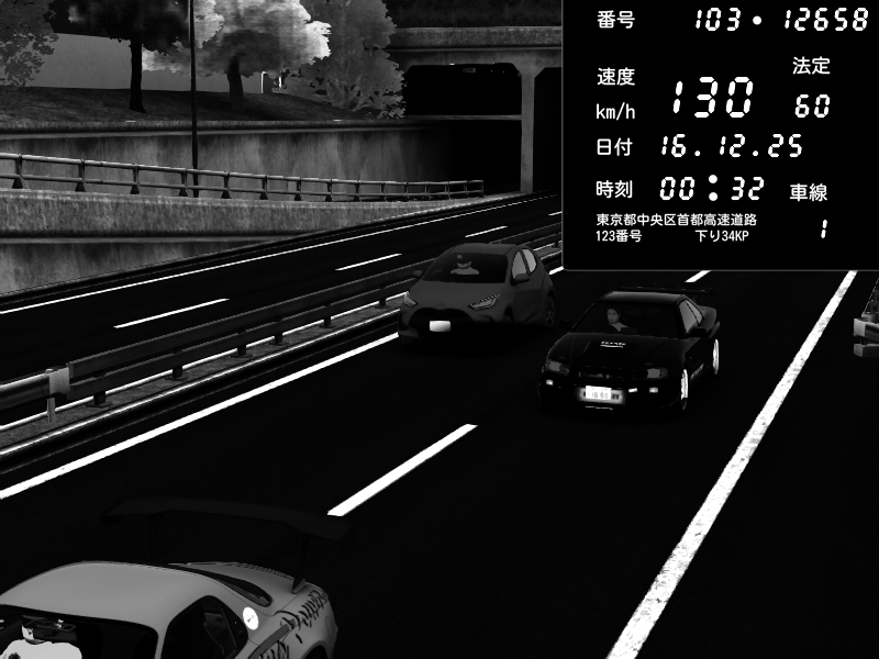 | 2025/12/15 18:13 | C1内回り 竹橋JCT | 123 / 60 km/h | Honda NSX [NA1] PVLSX | CAPTURE |