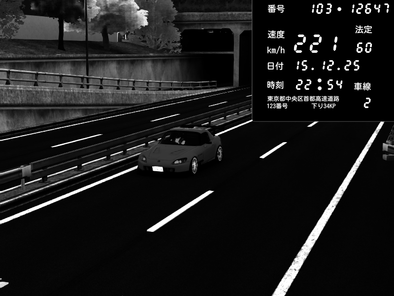 | 2025/12/15 22:49 | C1外回り 芝公園 | 227 / 60 km/h | Honda S2000 (AP2 - Legendary) | CAPTURE |