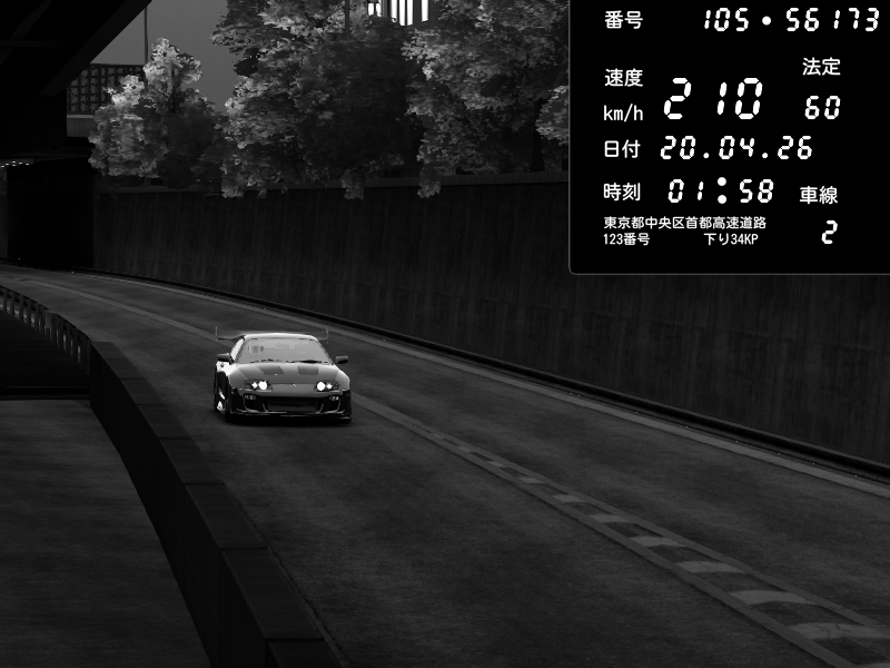 | 2026/04/20 01:11 | C1内回り 竹橋JCT | 137 / 60 km/h | Toyota Supra MKIV Time Attack | CAPTURE |