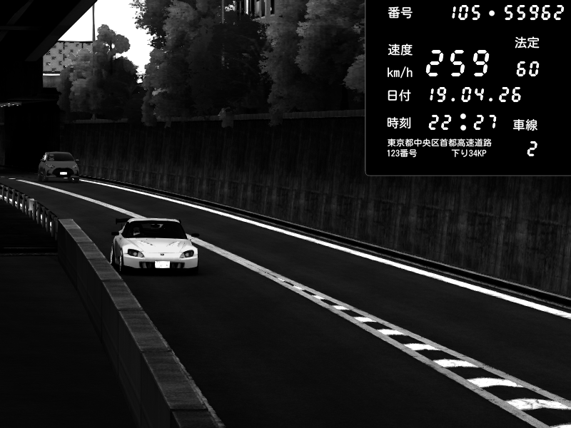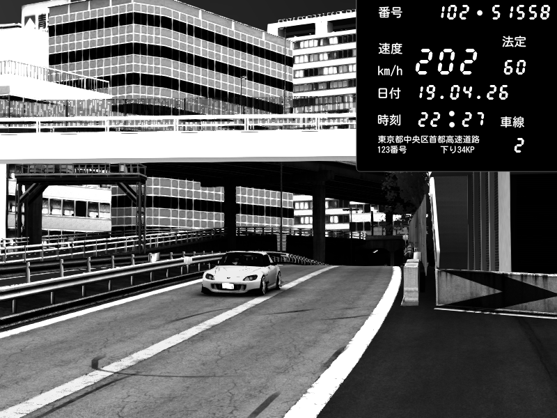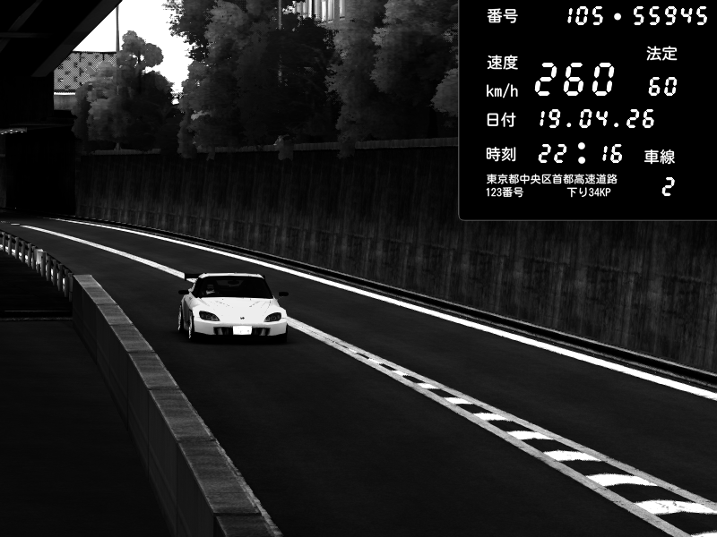 | 2026/04/19 22:22 | C1外回り 京橋 | 262 / 60 km/h | Honda S2000 (AP2 - Legendary) | CAPTURE |