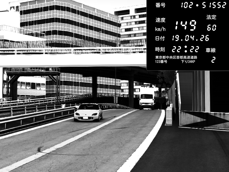 | 2026/04/19 22:23 | C1外回り 新富町 | 149 / 60 km/h | Honda S2000 (AP2 - Legendary) | CAPTURE |