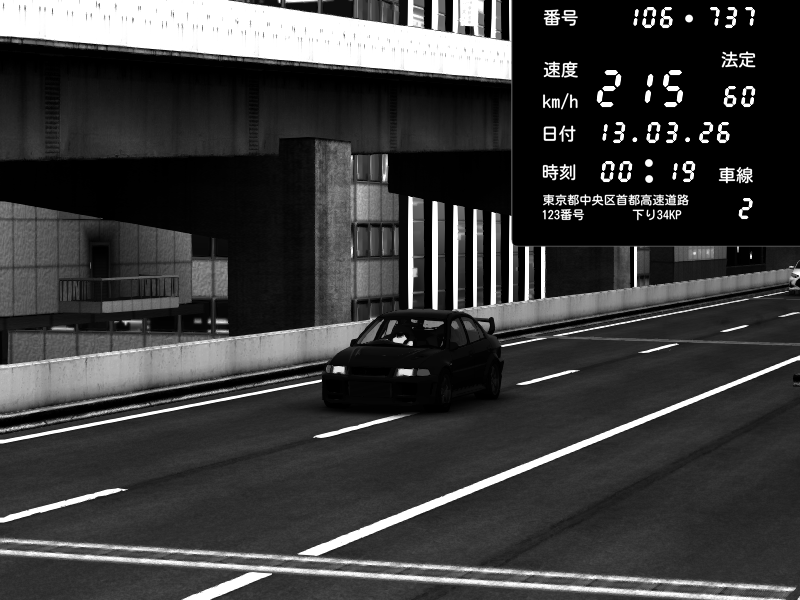| 2026/03/13 00:17 | C1内回り 銀座 | 155 / 60 km/h | Mitsubishi Lancer Evolution V Wangan Spec | CAPTURE |