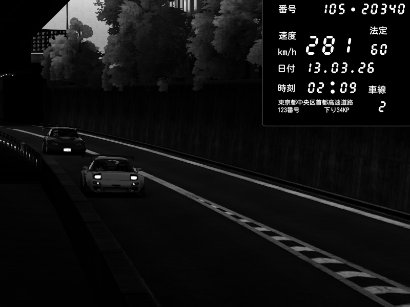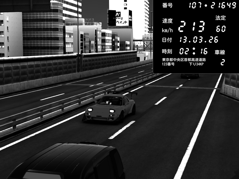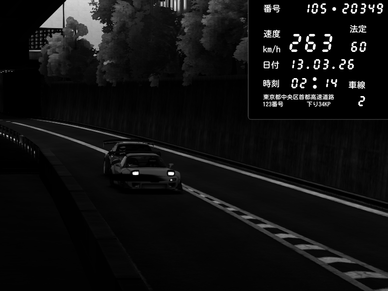 | 2026/03/13 02:14 | C1外回り 京橋 | 263 / 60 km/h | Mazda RX-7 FD3S FEED Afflux GT3 | CAPTURE |