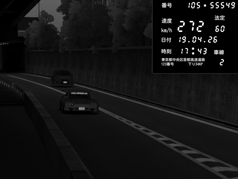 | 2026/04/19 17:43 | C1外回り 京橋 | 272 / 60 km/h | Pit Road M - Mitsubishi GTO Twin Turbo | CAPTURE |