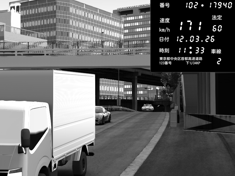 | 2026/03/12 11:33 | C1外回り 新富町 | 171 / 60 km/h | Mazda RX-7 FD3S FEED Afflux GT3 | CAPTURE |
