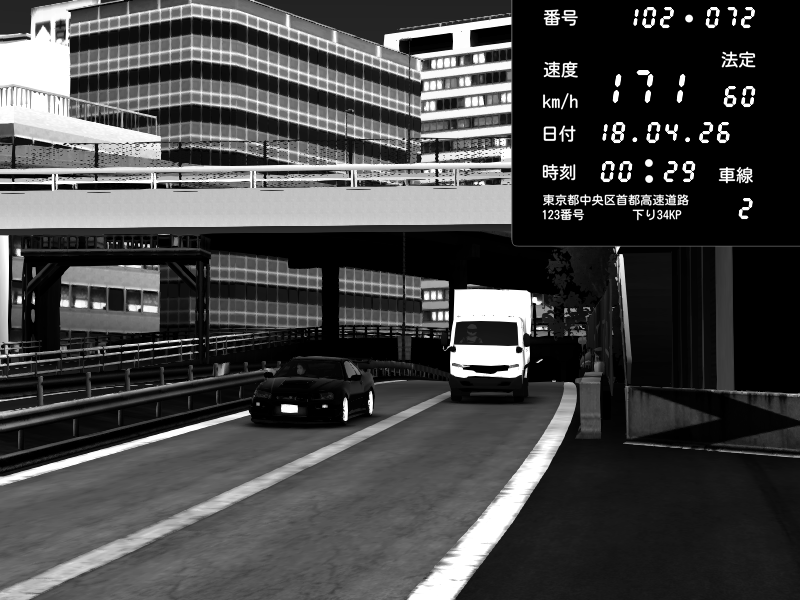 | 2026/04/18 00:29 | C1外回り 新富町 | 171 / 60 km/h | Nissan Skyline GT-R R34 Nismo Omori Factory S1 | CAPTURE |