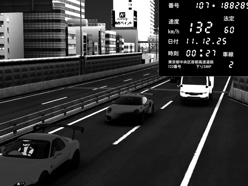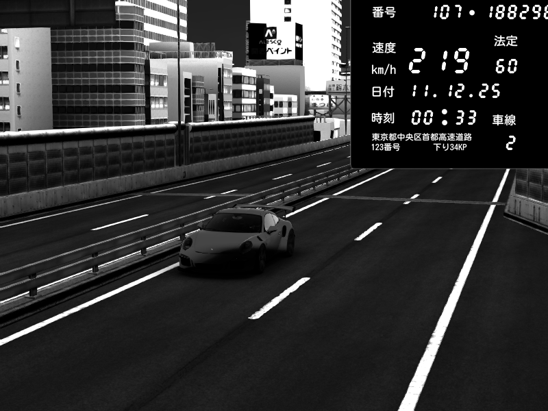 | 2025/12/11 00:02 | 4号下り 代々木 | 146 / 60 km/h | Porsche 911 GT3 RS | CAPTURE |