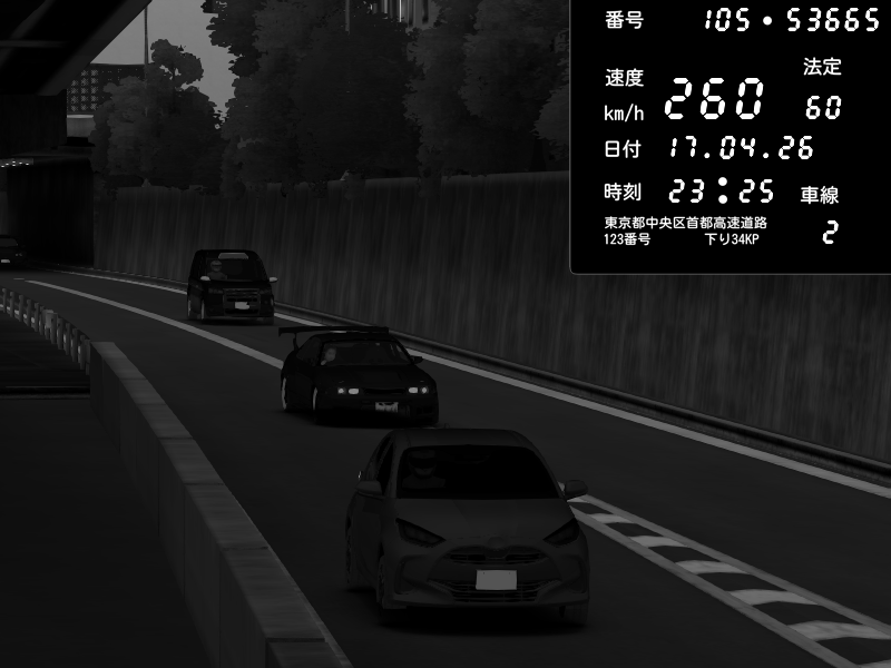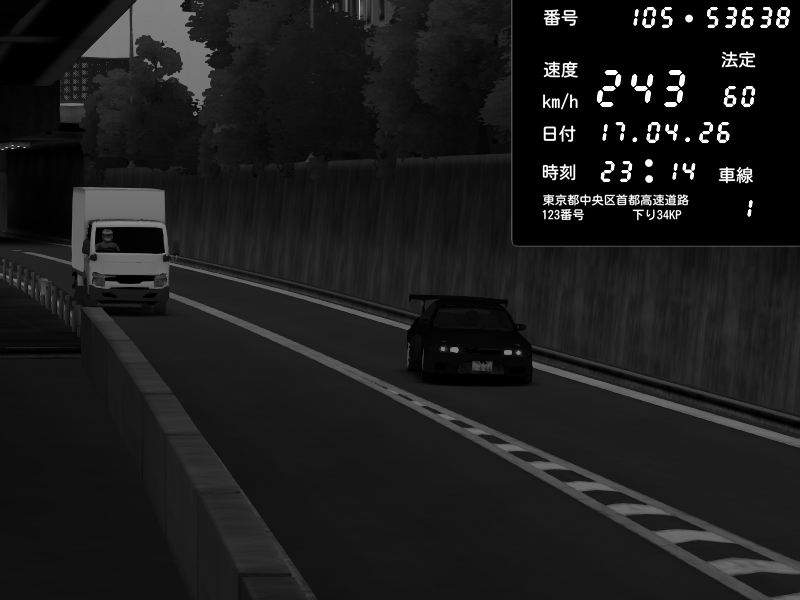 | 2026/04/17 23:11 | C1ε€εγ θε ¬ε | 181 / 60 km/h | Nissan Skyline GTR R33 (S3 - Wangan) | CAPTURE |