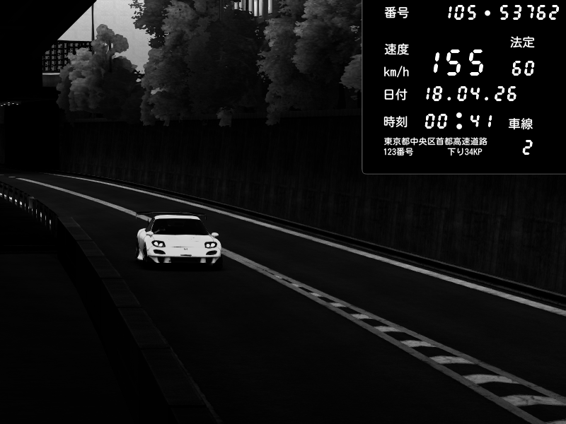 | 2026/04/18 00:41 | C1外回り 京橋 | 155 / 60 km/h | Mazda RX-7 FD3S RE Amemiya | CAPTURE |
