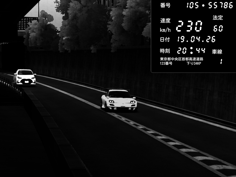 | 2026/04/19 20:40 | C1外回り 新富町 | 189 / 60 km/h | Mazda RX-7 FD3S RE Amemiya | CAPTURE |