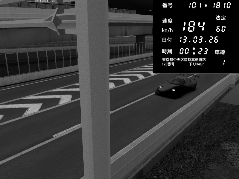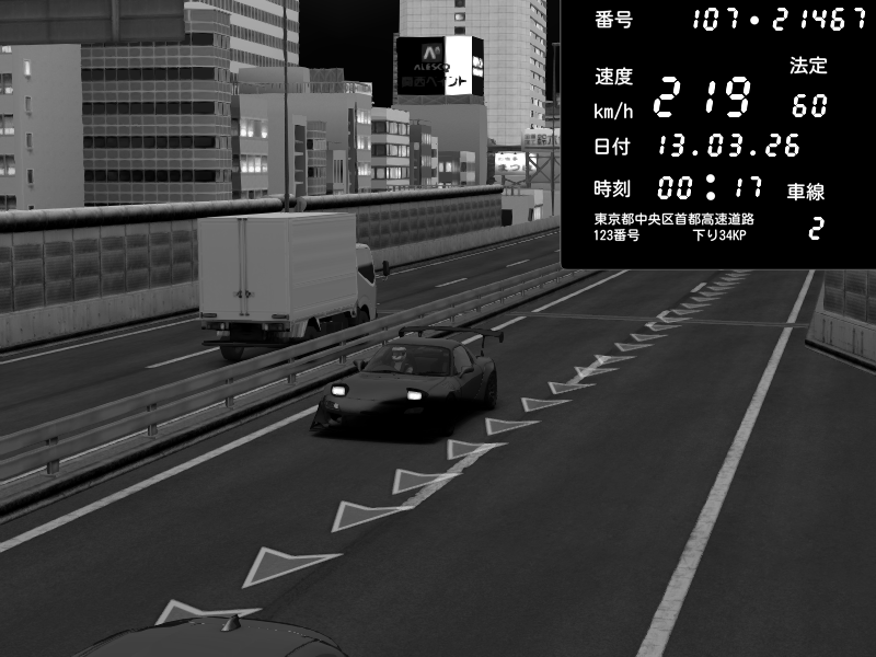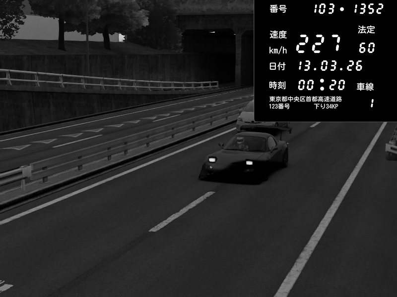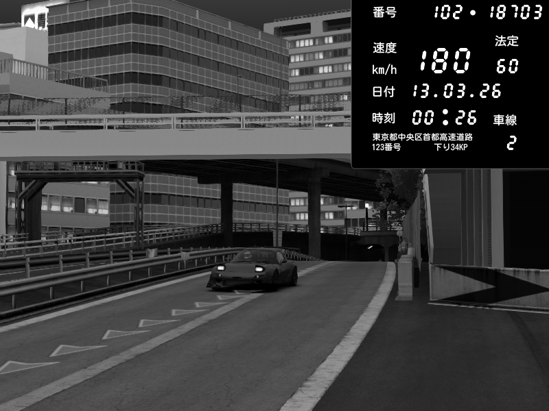 | 2026/03/13 00:23 | C1内回り 竹橋JCT | 184 / 60 km/h | Mazda RX-7 FD3S FEED Afflux GT3 | CAPTURE |
