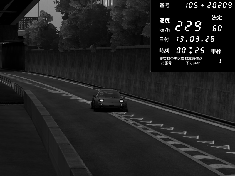 | 2026/03/13 00:25 | C1外回り 京橋 | 229 / 60 km/h | Mazda RX-7 FD3S FEED Afflux GT3 | CAPTURE |