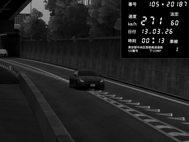 | 2026/03/13 00:13 | C1外回り 京橋 | 271 / 60 km/h | Nissan GT-R NISMO 2017 | CAPTURE |